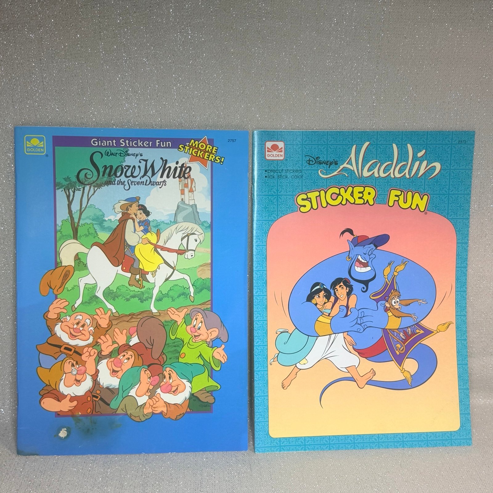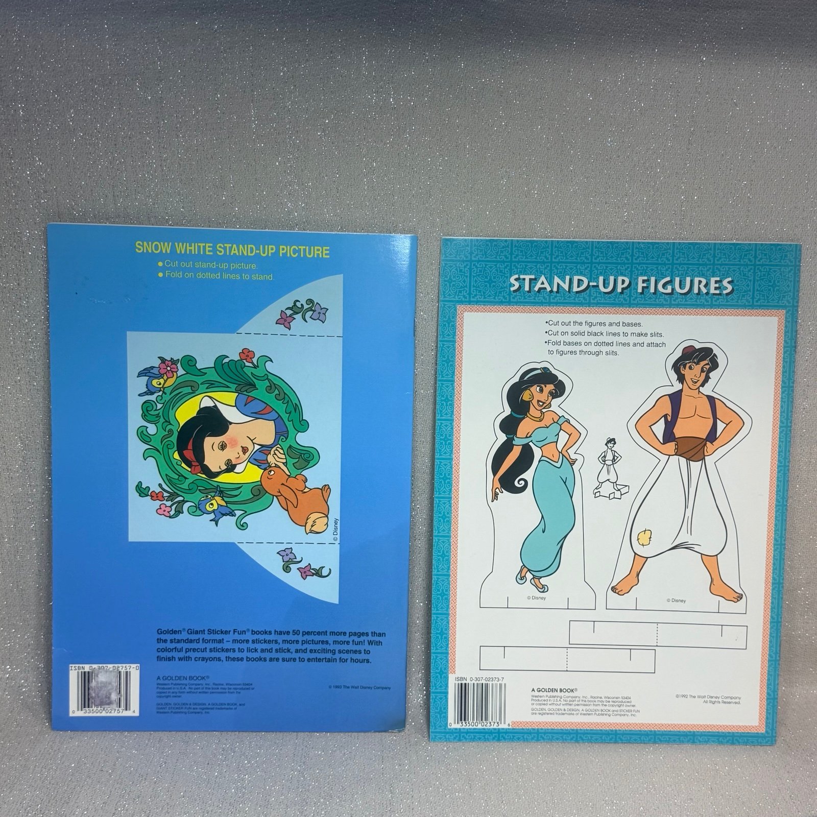 Set of 3 Brand New old stock, vintage Walt Disney Giant Sticker Fun Coloring Books made by Golden Books.