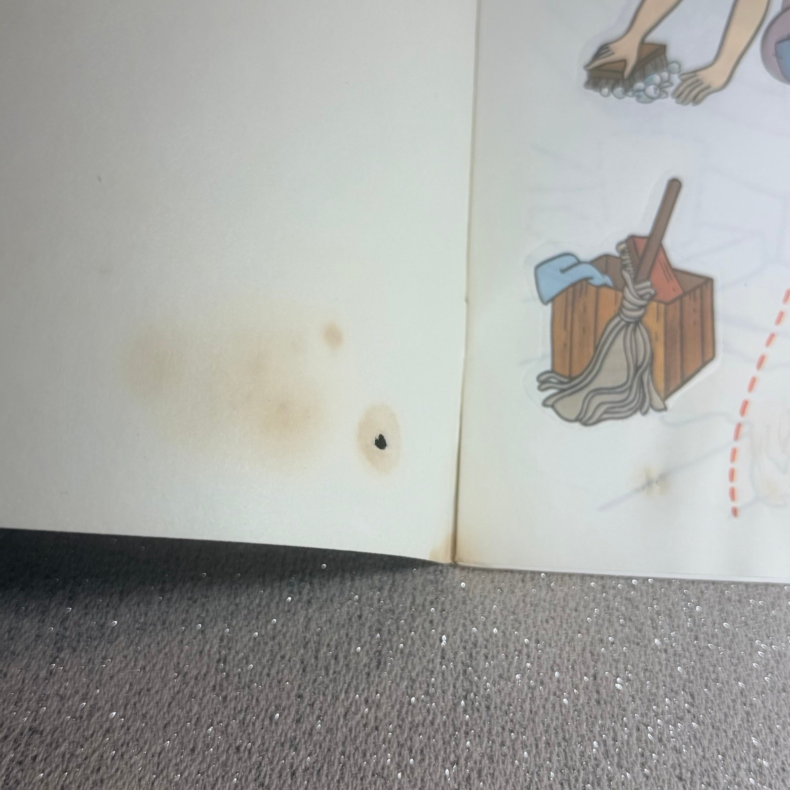 These are the old school lick, stick and color books! All pages are intact, no writing or coloring. All stickers are still on the perforated pages. The covers are bright and the bindings have not been broken. Normal wear from storage.